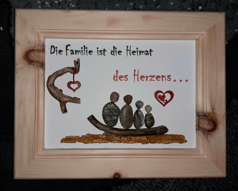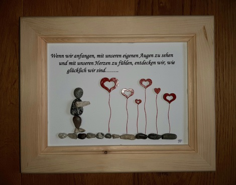Exclusiv mit selbst hergestellten Zirbenrahmen, alle weiteren Materalien und Steine sind lackiert und verklebt. Die Größe der Bilder ist 30cm x 24cm mit rückseitigen Aufhängeösen.